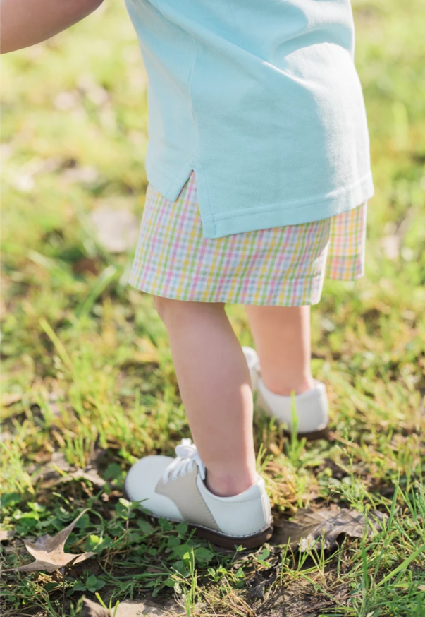 Classic two-tone blucher leather saddle oxford featuring lace closure. Offered in matte colors; sizes ranging from 3.0 infant - 1.0 youth.