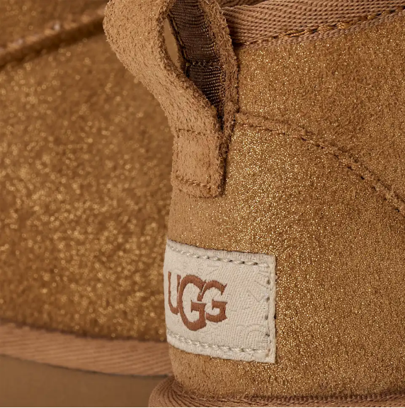 Our Classic Ultra Mini Dazzle is a shimmering take on one of our fan favorites. This Classic features everything kids love about the original: a signature UGGplush™ lining and insole, and a flexible, ultra-lightweight sugarcane EVA outsole — now in a dazzling print. It also features a low shaft height, adding easy on-off and enhanced versatility.