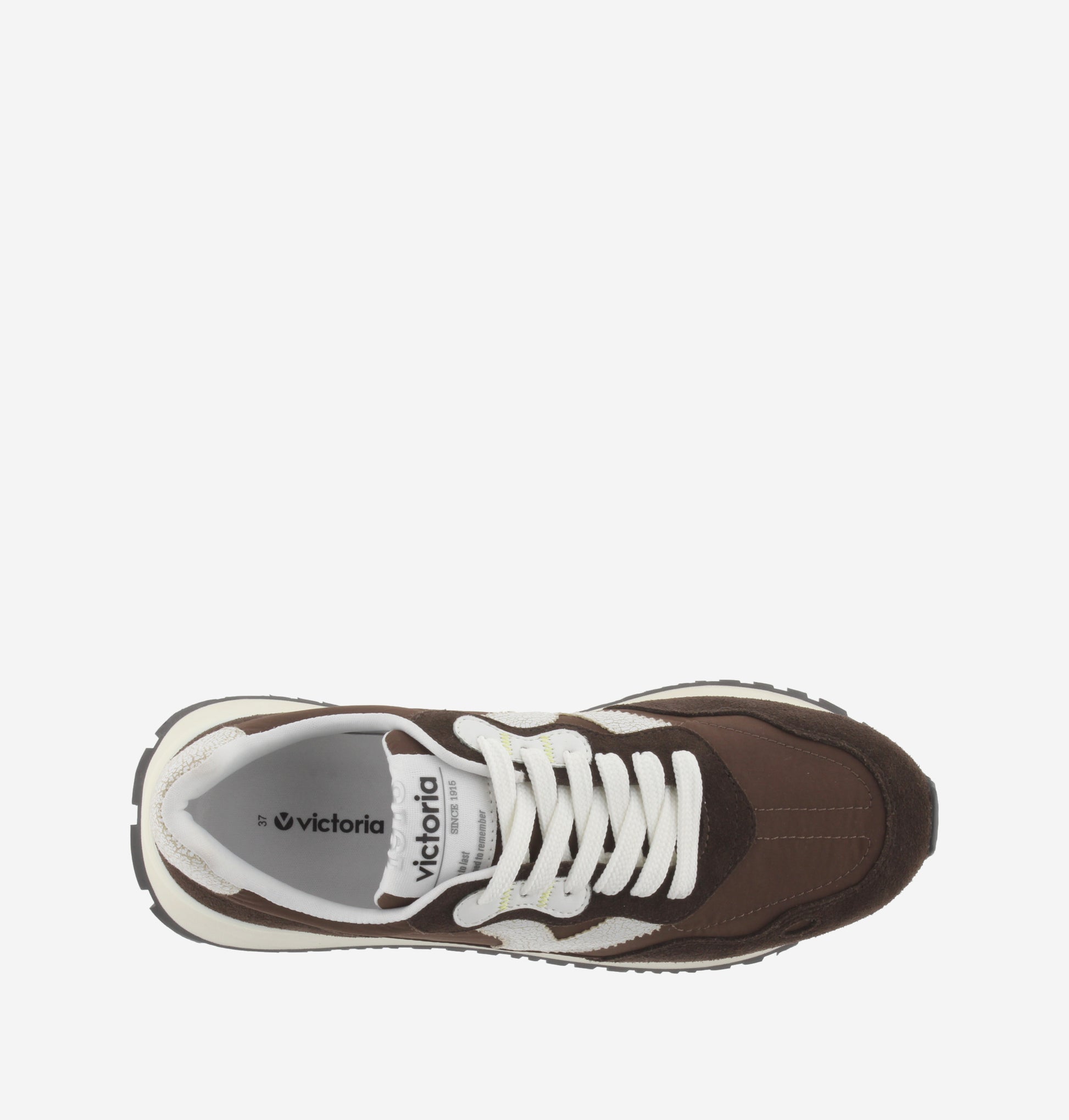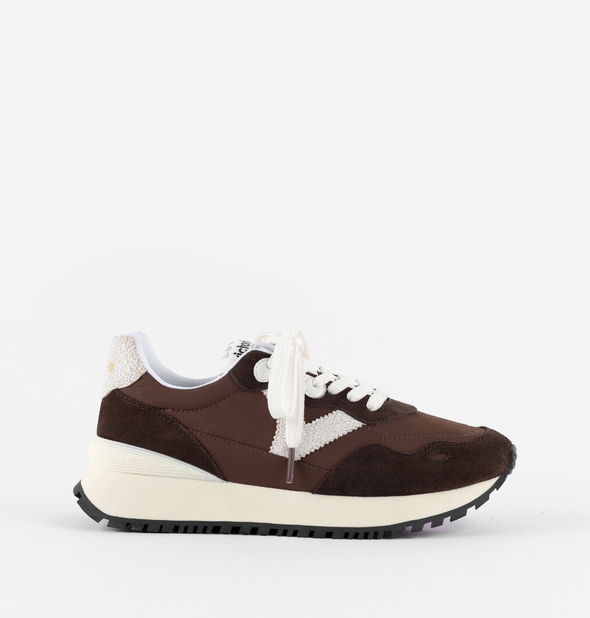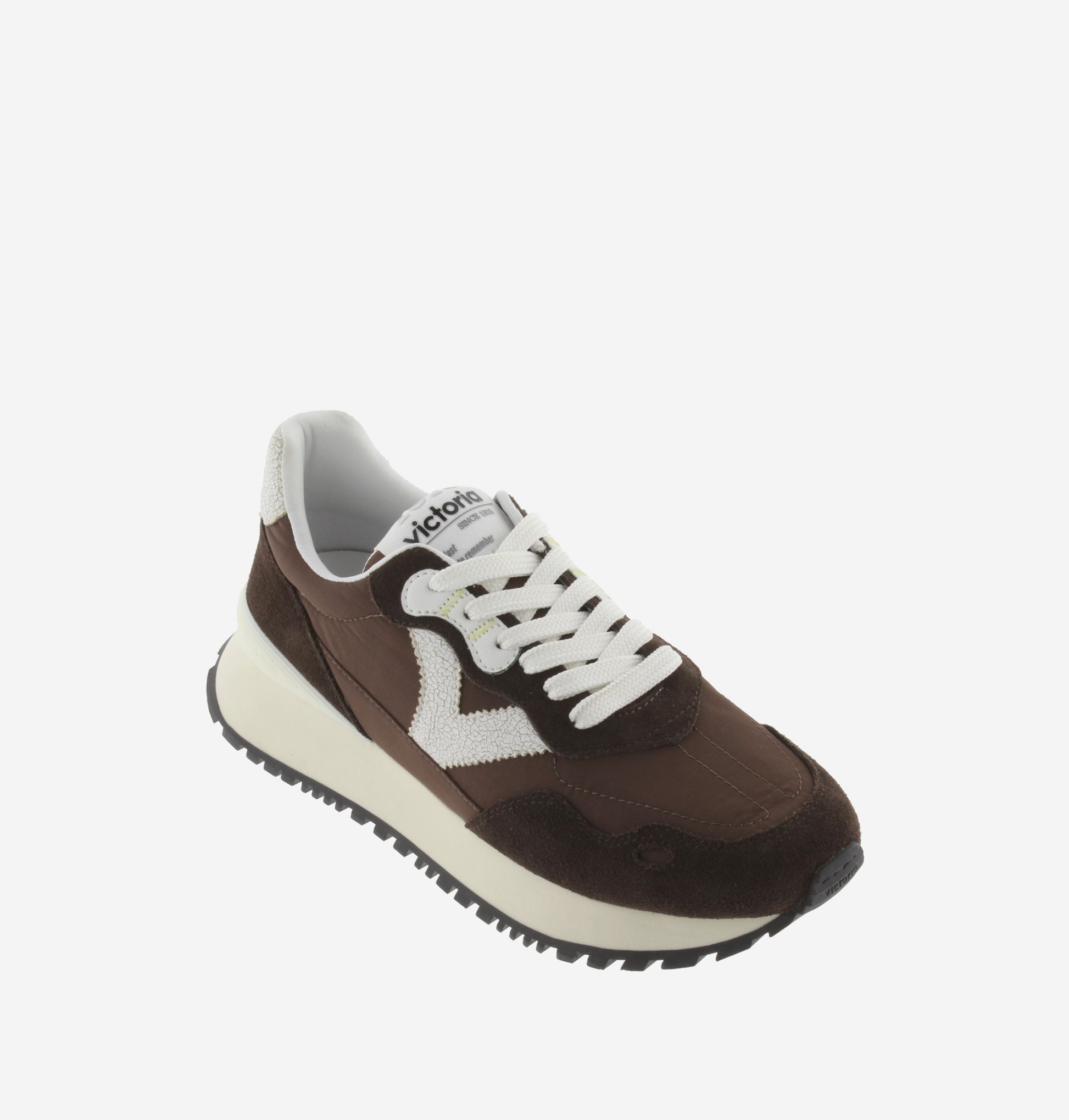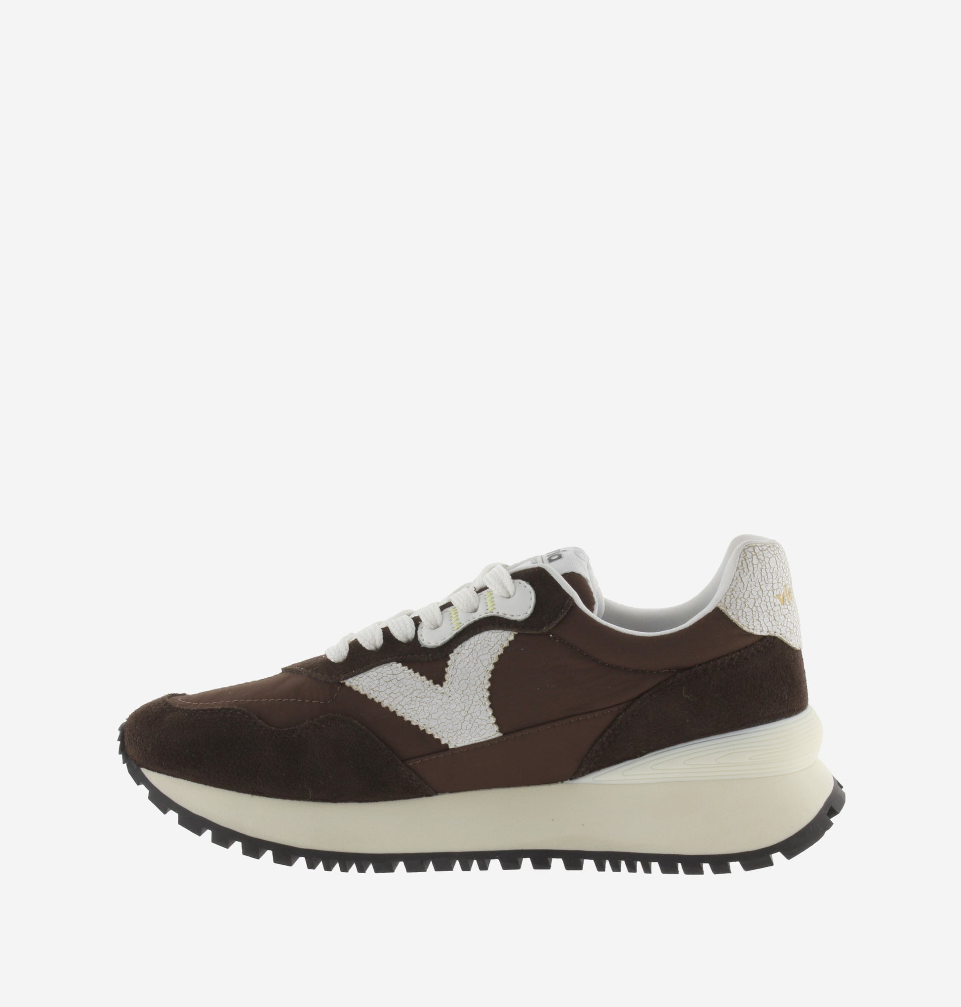 Nylon sneakers with overlapping faux split leather pieces in matching color. They also feature the lateral Victoria logo and the back piece in cracked leather effect. Closure with white laces. Their serrated sole (TPU + EVA + TPR) enhances grip.
